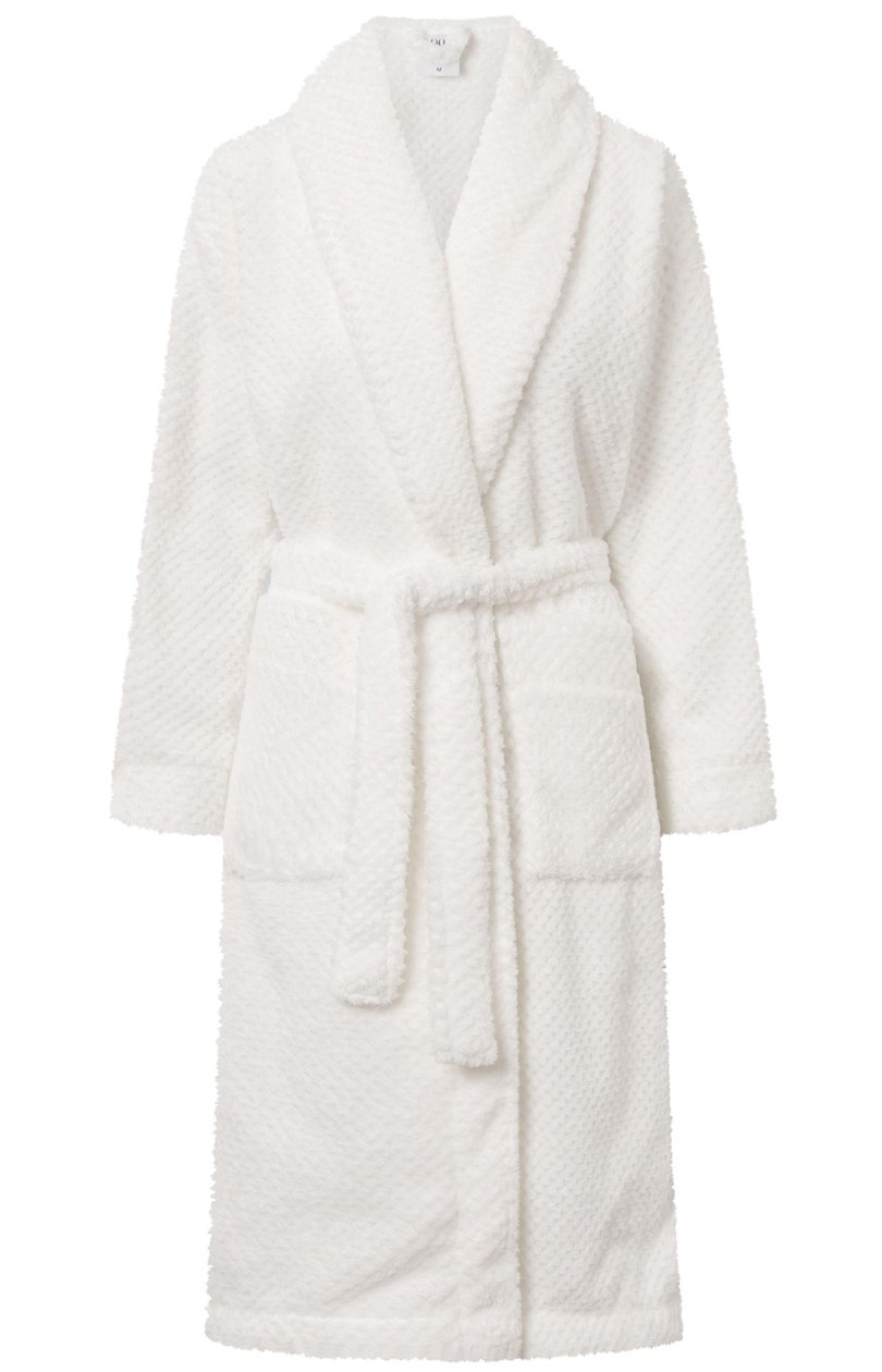 Halat moale, cu croială lejeră, confortabilă și mâneci lungi. Rochie de toaletă cu cravată în talie.