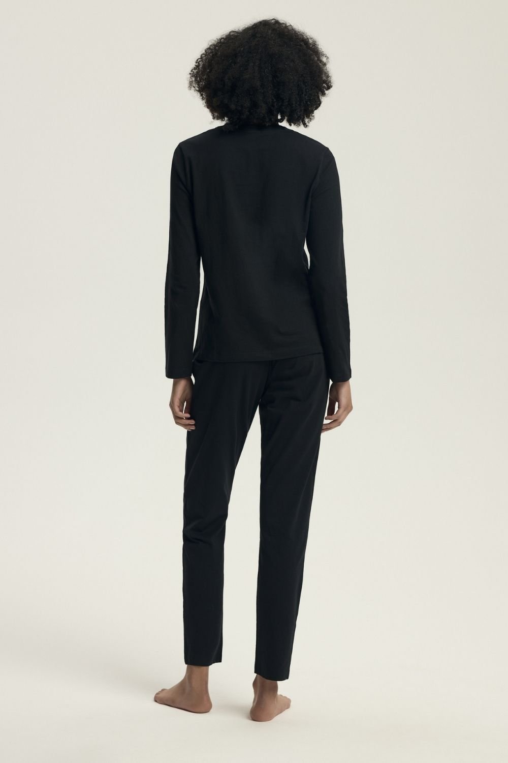 Pijama confortabilă de damă cu croială clasică, ideală pentru somn și relaxare acasă. Bluza cu mâneci lungi și decolteu rotund este decorată cu un mesaj care adaugă un caracter modern și feminin întregului set. Pantalonii lungi cu o bandă elastică lată în talie garantează confort și o potrivire perfectă. Setul este ambalat într-o pungă de plastic, astfel încât se va potrivi perfect și ca un cadou practic.