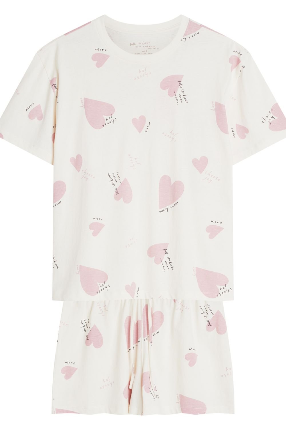 Pijama confortabilă pentru femei este combinația ideală între confort și stilul relaxat. Modelul cu guler rotund și mânecă scurtă oferă confort și un aspect atemporal. Croiala lejeră și confortabilă face ca setul să se așeze perfect pe siluetă și să nu împiedice mișcarea. Întreaga piesă este confecționată dintr-un material moale și respirabil cu imprimeu, care este plăcut pentru piele și asigură o circulație adecvată a aerului în timpul somnului. Pantalonii sunt prevăzuți cu o bandă elastică în talie și șnur în talie, ceea ce permite ajustarea individuală a siluetei. Pijama este ambalată într-un sac practic din folie, ceea ce o face potrivită și ca cadou.