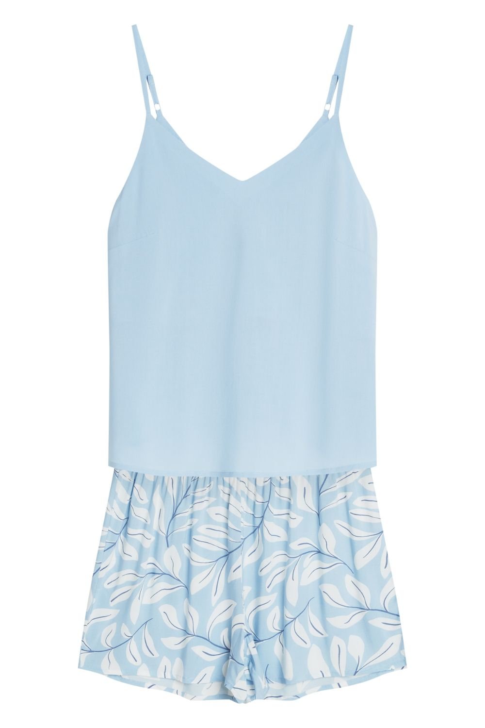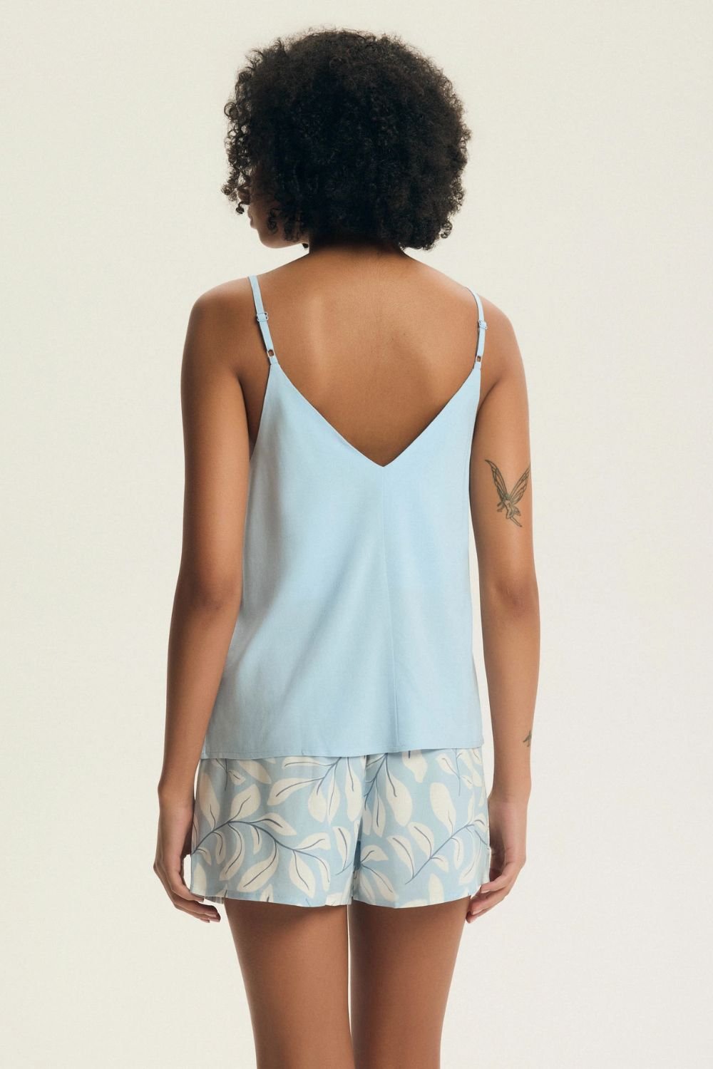 Pijama ușoară și feminină pentru femei, creată cu gândul la confortul în timpul somnului și relaxării acasă. Setul este format dintr-o cămașă cu bretele reglabile și decolteu în formă de V, care subliniază silueta feminină, oferind în același timp libertate de mișcare. Culorile delicate și discrete adaugă o eleganță subtilă întregului ansamblu. La set sunt incluse pantaloni scurți cu croială largă și confortabilă. În talie se află o bandă elastică largă, care se potrivește bine pe siluetă, asigurând confort în timpul purtării. Pijama este confecționată dintr-un material moale și respirabil, plăcut pentru piele, ideal pentru nopțile de vară. Întregul set este ambalat într-un sac de plastic practic, facilitând depozitarea și transportul.