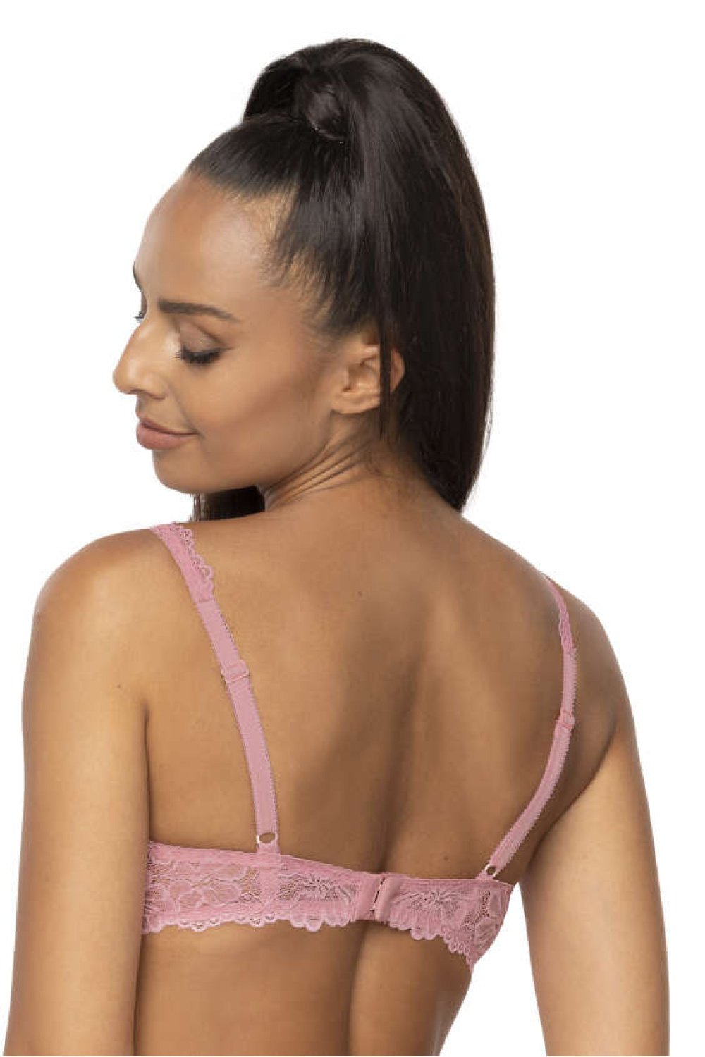 Sutienul spectaculos Carmela. Se prezintă frumos pe orice sân. Realizat integral din dantelă fină de culoare roz, care se așează senzual pe sân și urcă pe bretea. Bretele reglabile, nedetasabile. Închidere cu două rânduri de cârlige și reglare în trei trepte.